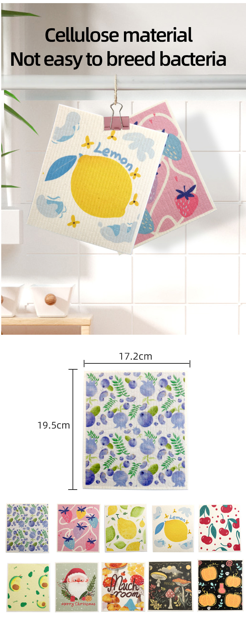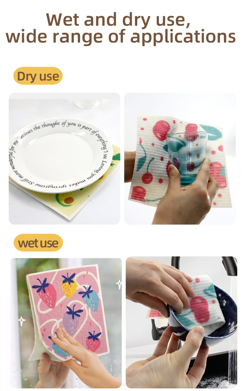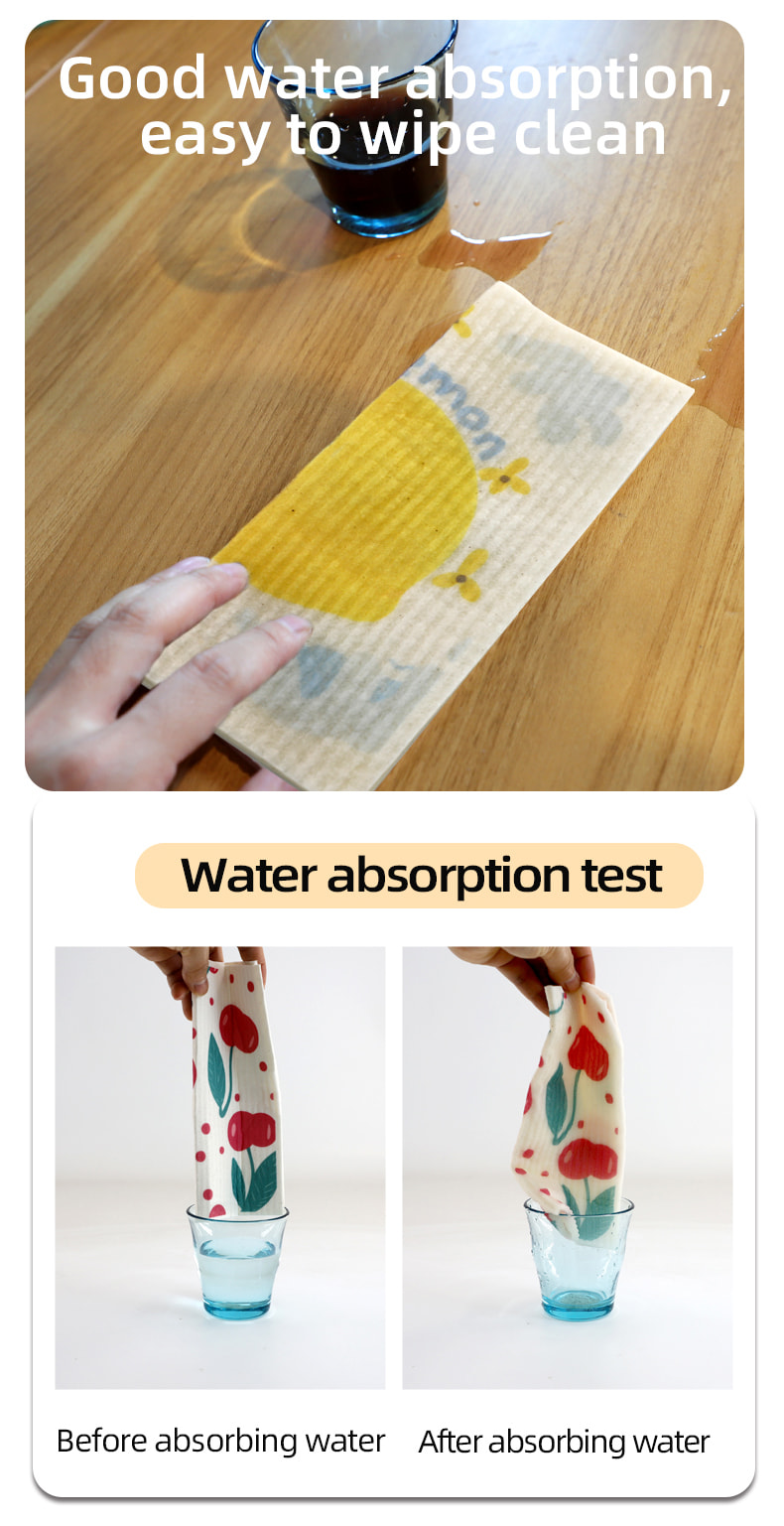 天然纤维素海绵布,柔软度好,吸水性好,易于清洁,环保可降解,耐用,干湿,不怕油