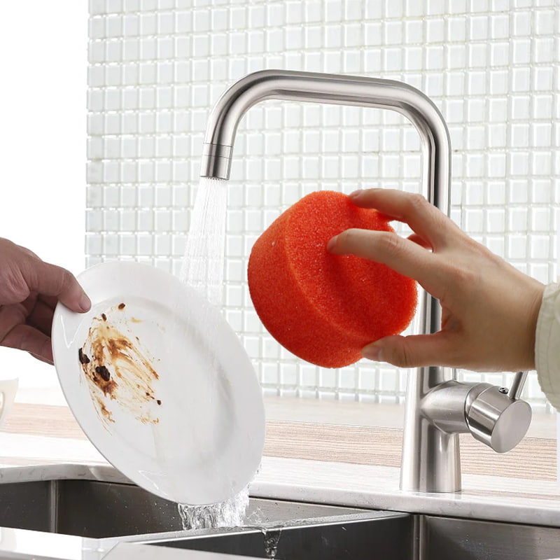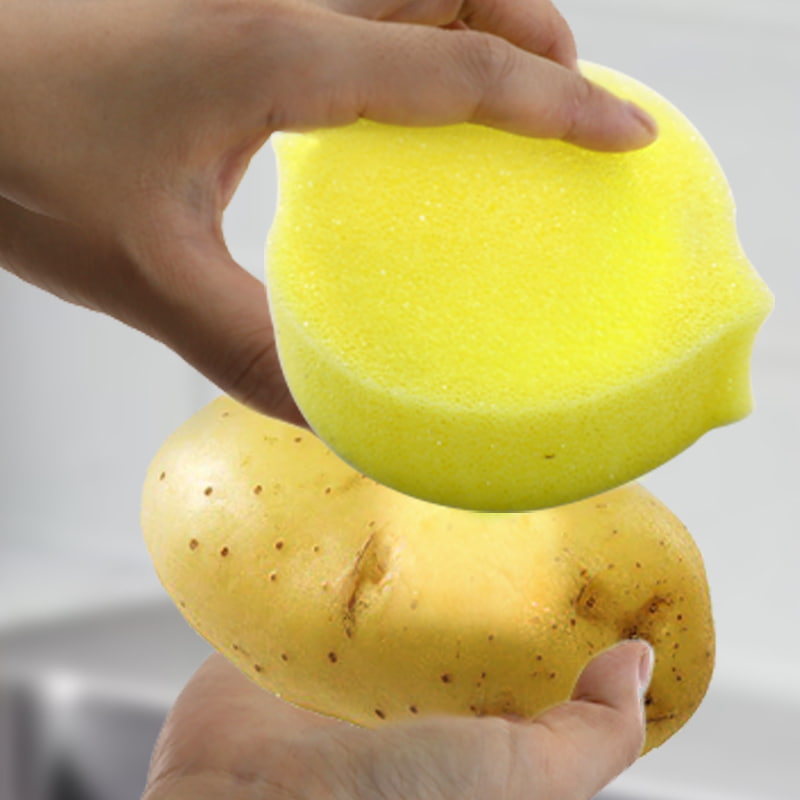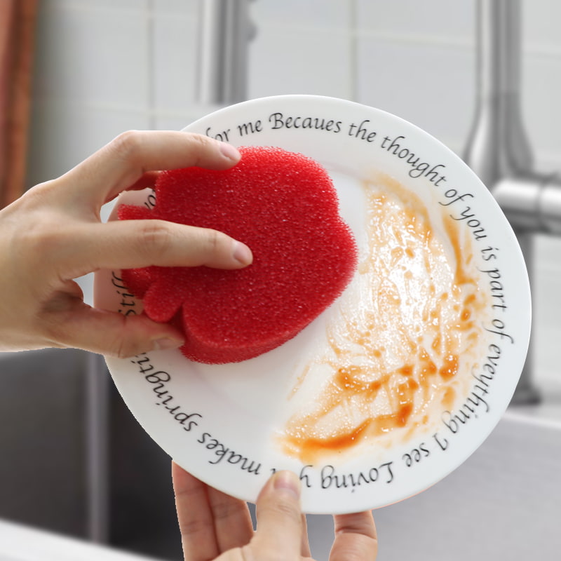 暴露于温水中时会变软:当水温高于 32℃ 时,海绵会迅速变软,可以轻轻清洁精致的表面(例如不粘锅涂层、玻璃器皿、水果),避免划伤。