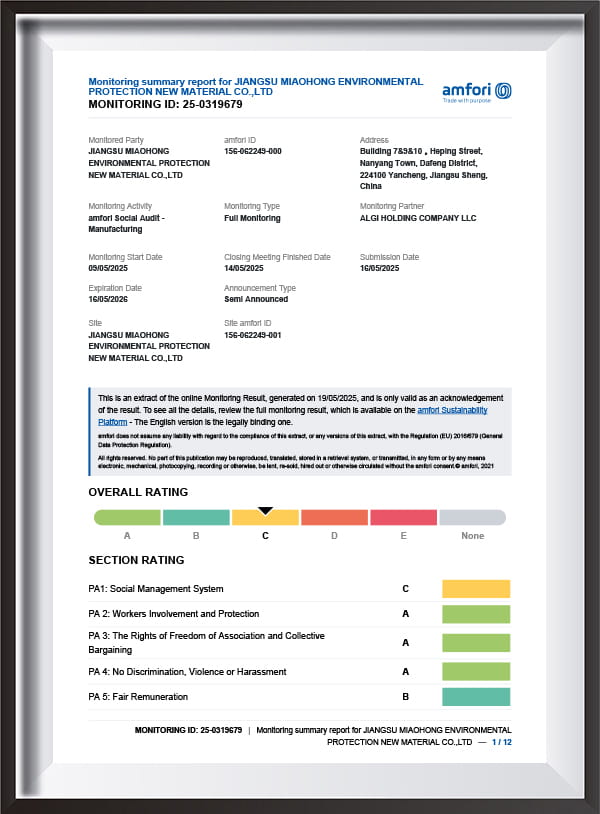 在长期发展过程中,公司始终坚持“以人为本、诚信经营、质量保证”的经营理念,不断深化围绕海绵材料研发、生产、应用的技术积累。经过十多年的探索和实践,工厂建立了成熟、独立、稳定的加工流程和质量控制体系,并成功通过ISO 9001质量管理体系认证和BSCI社会责任审核。这不仅体现了公司在产品质量和生产管理方面的标准化水平,也满足了当前国际供应链合规市场的核心要求。